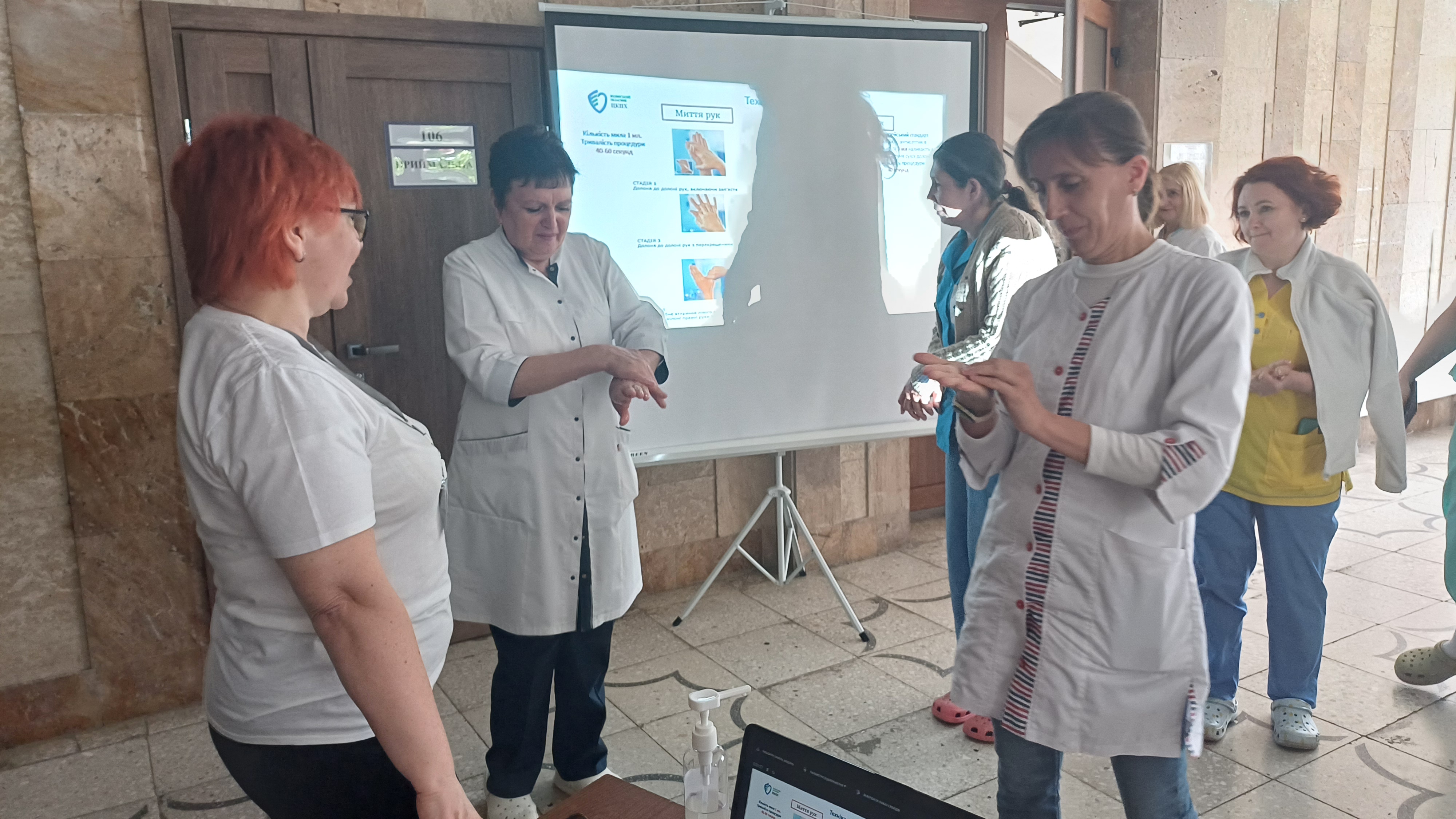 29.04.2025 завідувач відділу антимікробної резистентності та інфекційного контролю Наталія Рябченко та лікар-методист відділу антимікробної резистентності та інфекційного контролю Ірина Дембицька ДУ «Волинський обласний центр контролю та профілактики хвороб МОЗ України » для персоналу нашої установи провели тренінг приурочений до Всесвітнього дня гігієни рук з метою підвищення обізнаності та медичних та немедичних працівників про важливість дотримання гігієни рук.