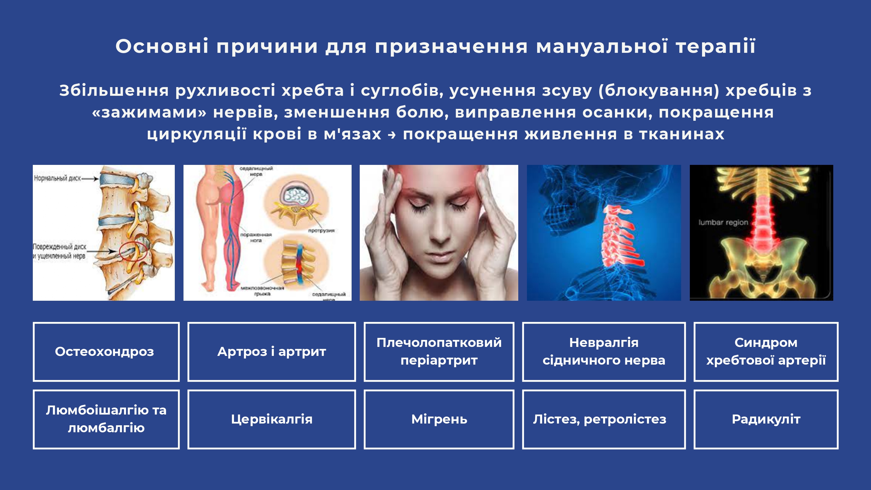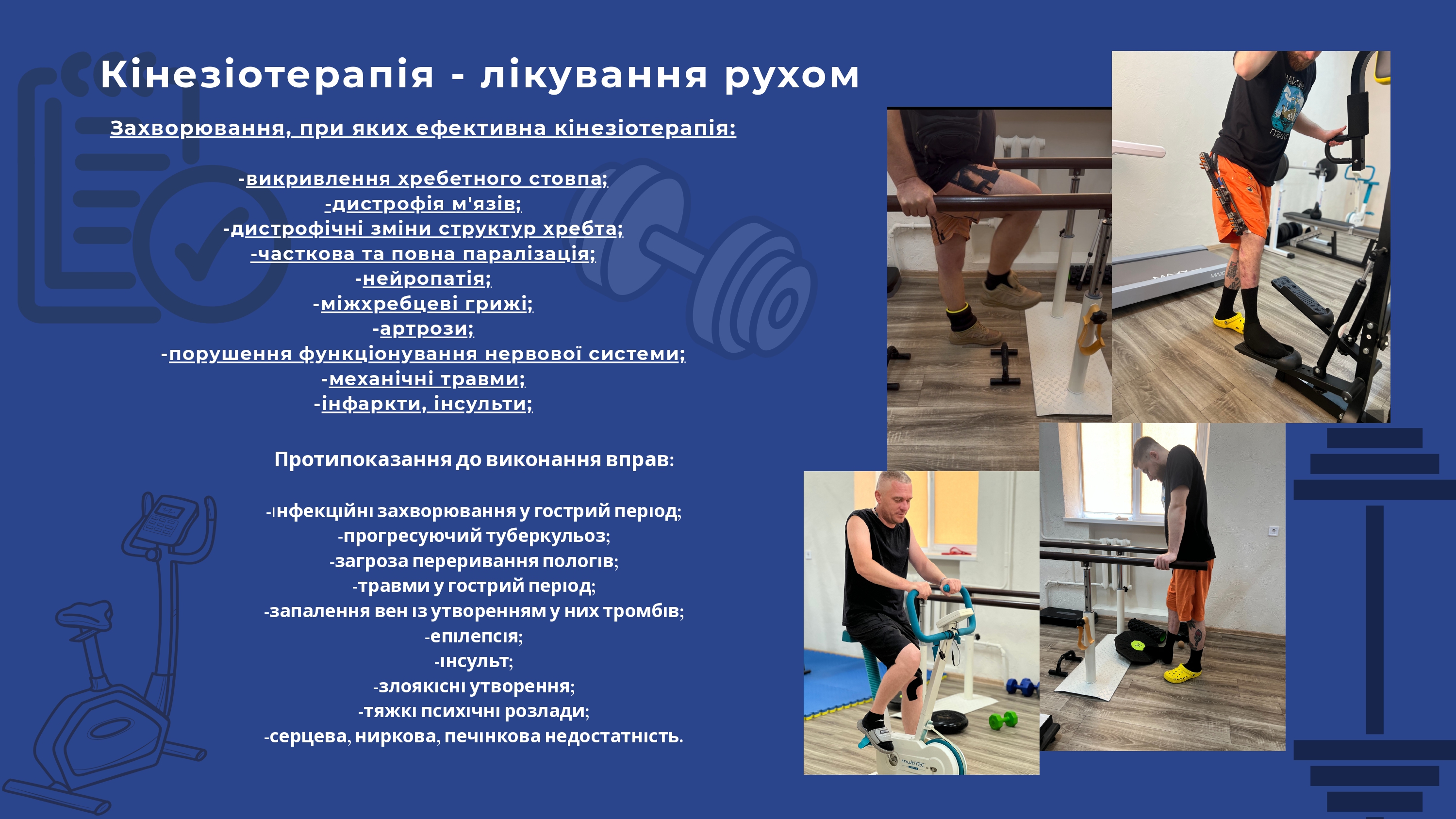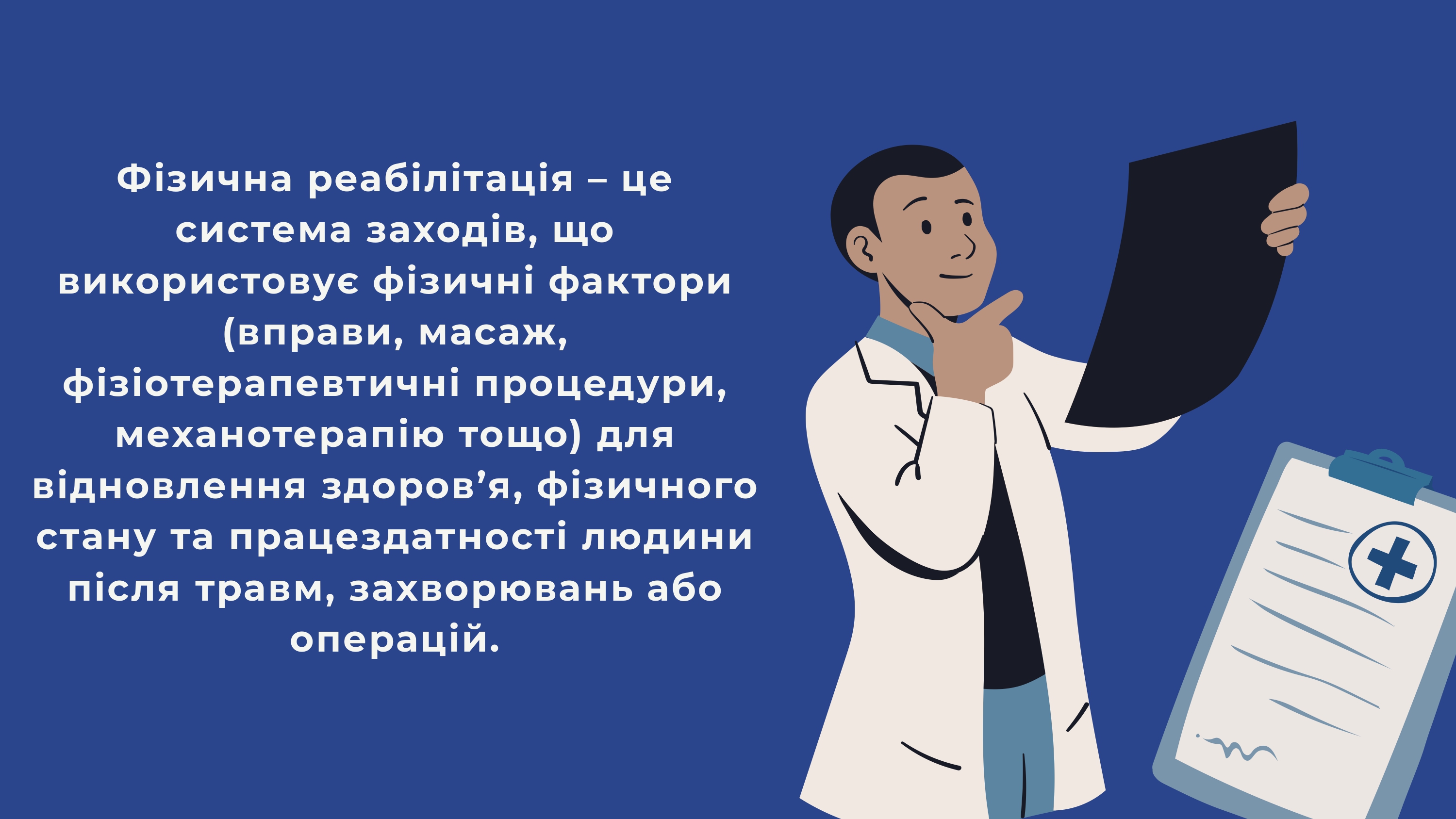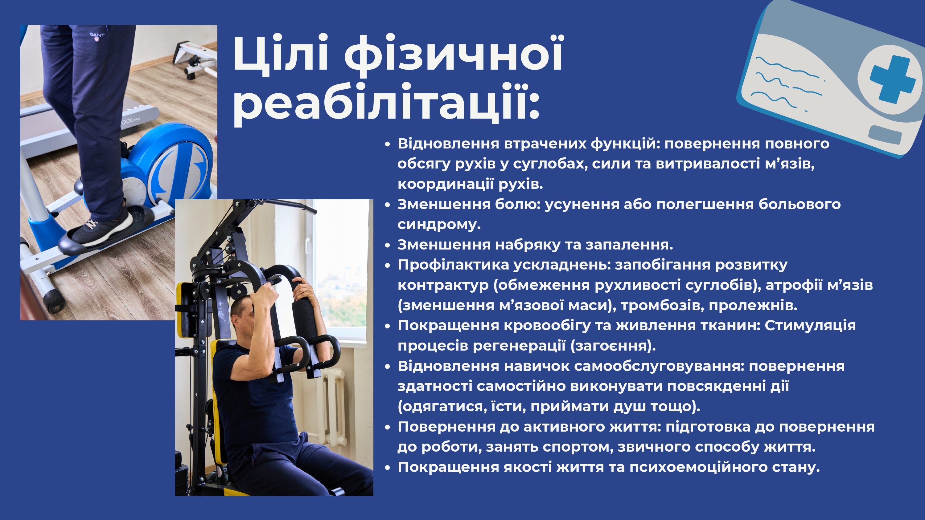 усунення наслідків перенесеної хвороби, травми, операції, тощо. У кожному