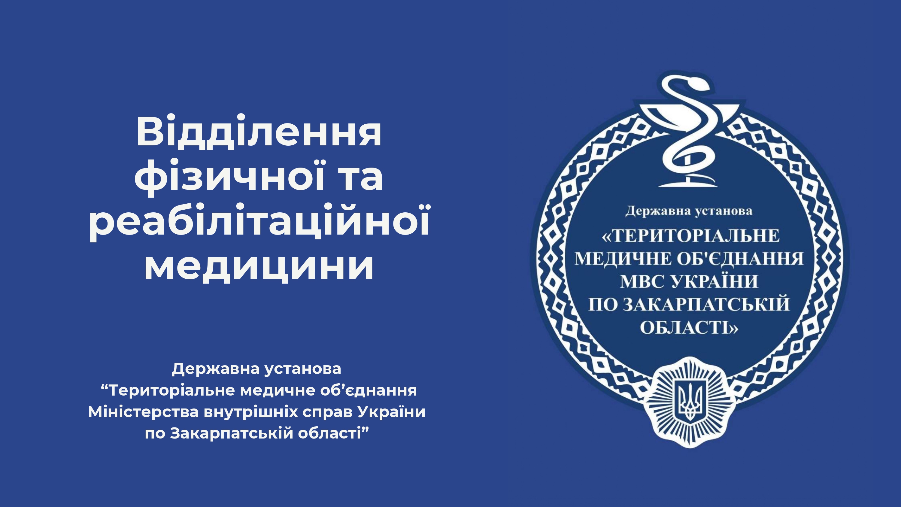 Головним завданням відділення фізичної та реабілітаційної медицини установи є відновлення оптимального фізичного та когнітивного рівня пацієнта з метою інтеграції їх в суспільство, профілактика виникнення ускладнень захворювання, відновлення/компенсація порушених чи втрачених функцій, активізація можливостей організму для повернення до повсякденної життєдіяльності.