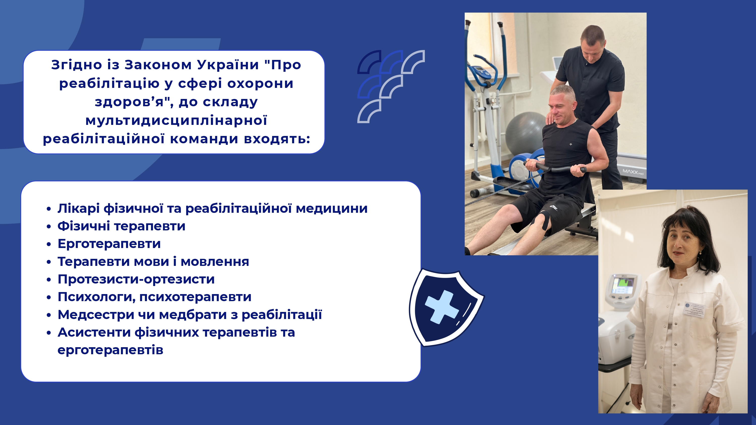 Мультидисциплінарна реабілітаційна команда виконує основні завдання відповідно до Закону України “Про реабілітацію у сфері охорони здоров’я”.