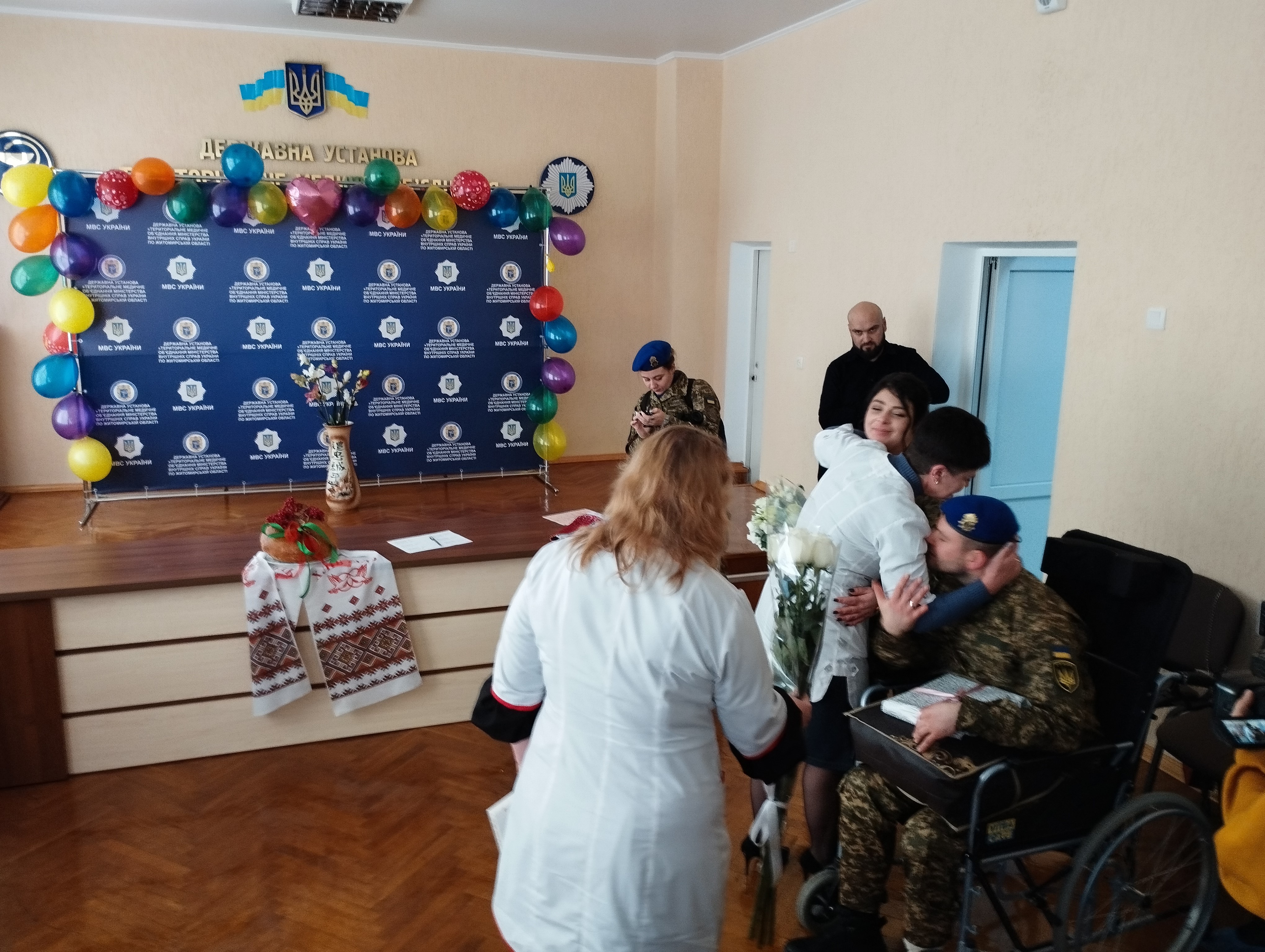 Поєднали свої серця два воїни – військовослужбовець НГУ, який проходить лікування, та військовослужбовиця-медекиня ЗСУ. Це незвичайна подія для лікувального закладу, але що може краще лікувати ніж кохання.