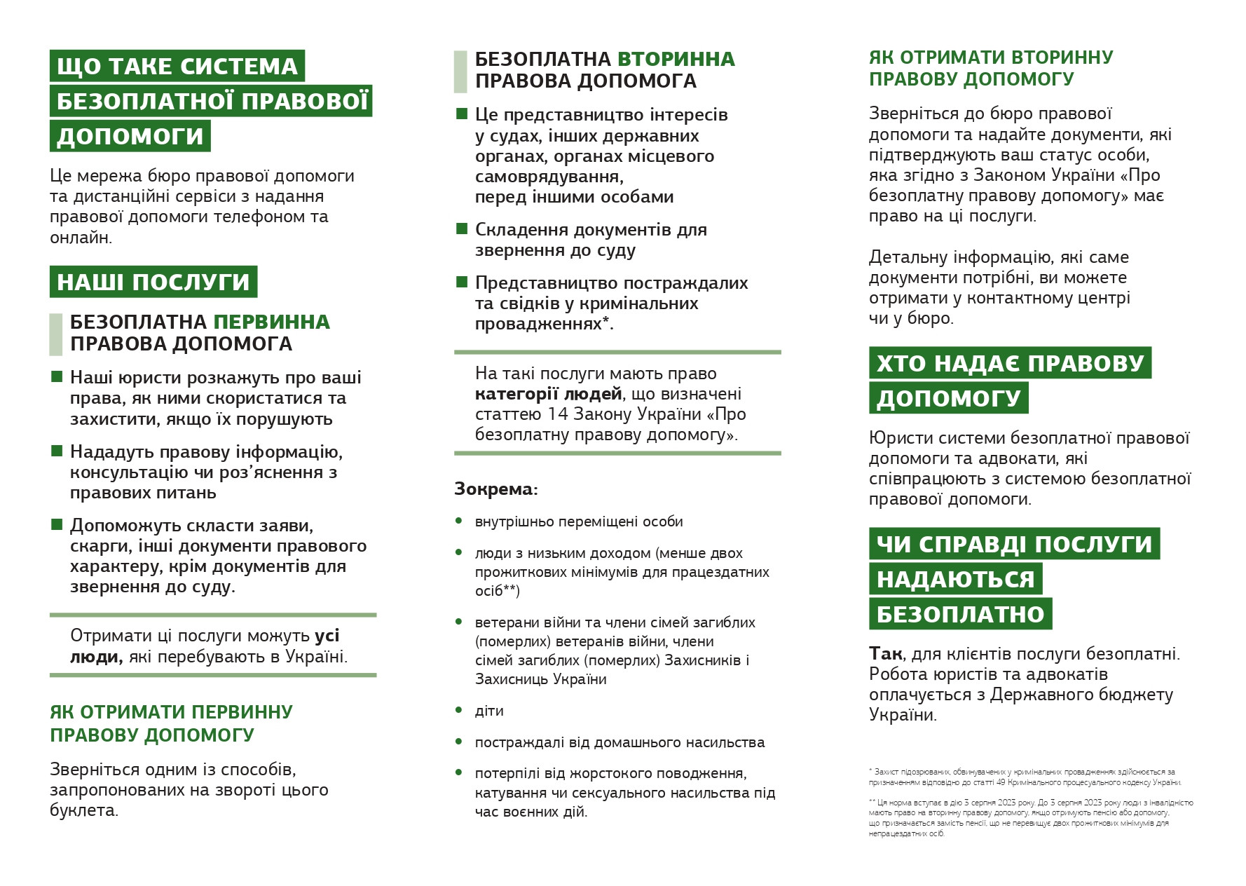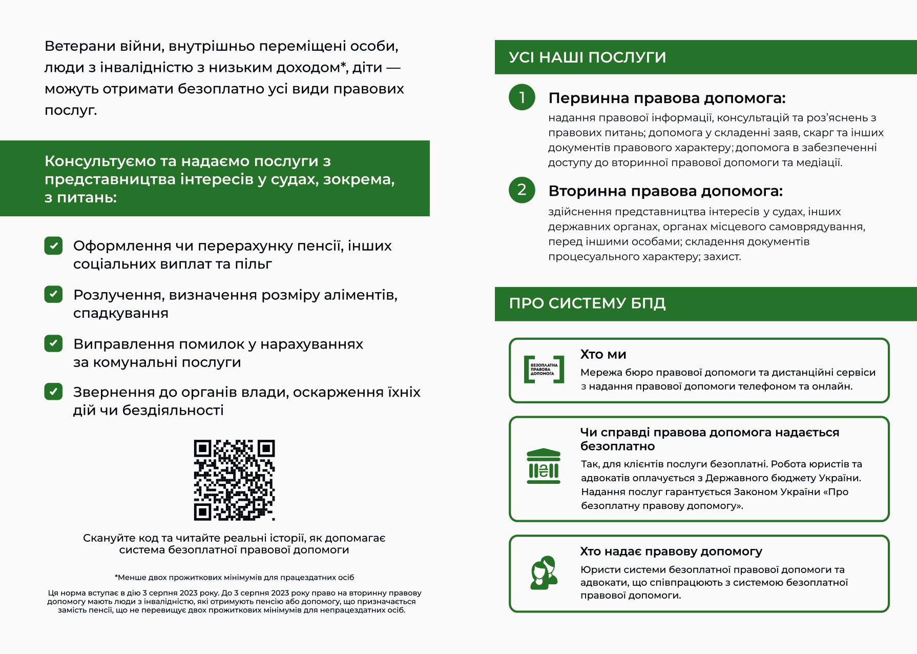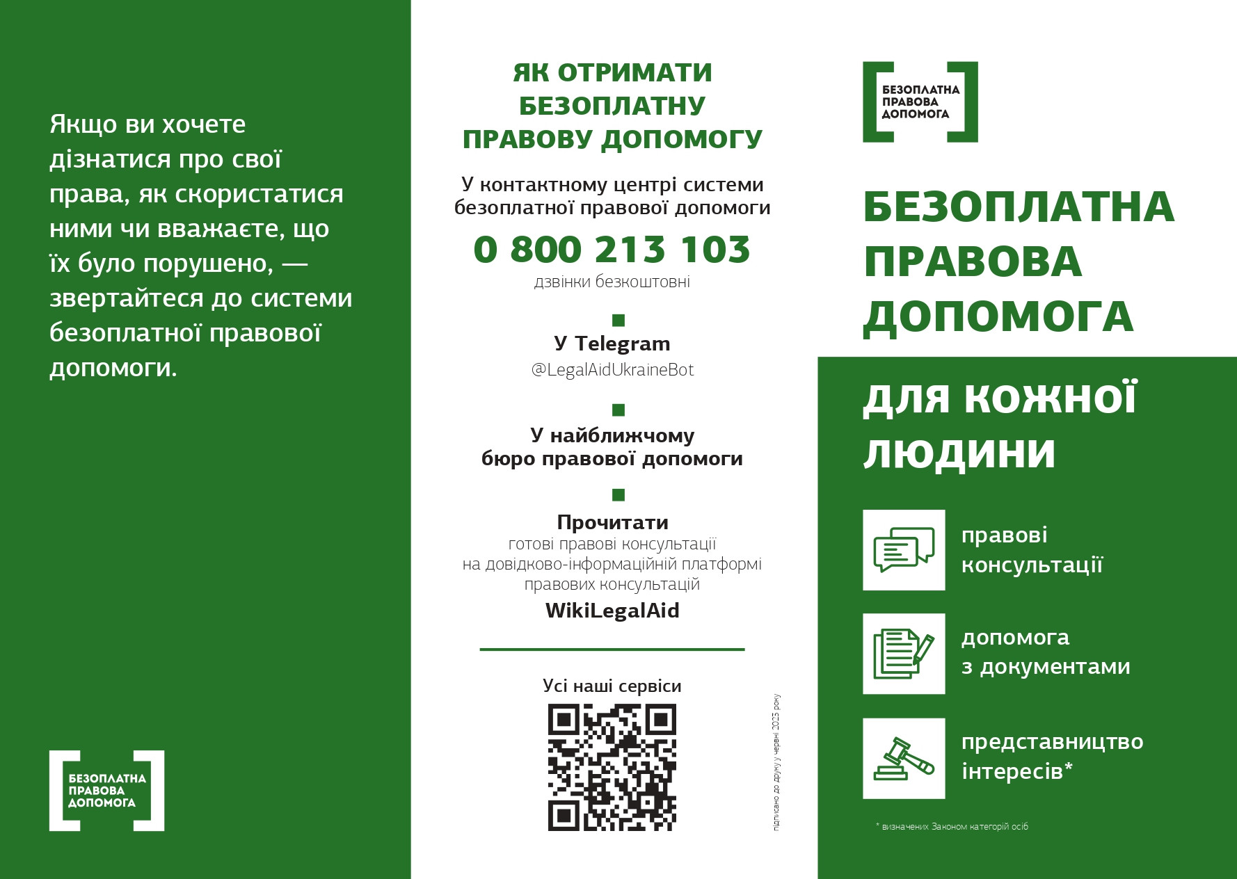 Також на сайті безоплатної правової допомоги за посиланням https://legalaid.gov.ua/publications/biblioteka/ можна ознайомитись з інформаційними матеріалами щодо питань правової допомоги за різними напрямками (Діти, домашнє насильство, пільги учасникам бойових дій, права осіб з інвалідністю, врегулювання сімейних і спадкових, земельних спорів; спадщина, шлюб….ДУЖЕ БАГАТО МАТЕРІАЛІВ!! .