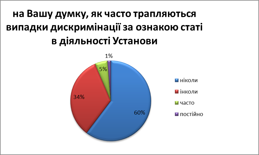 Водночас опитування підтвердило необхідність активізації інформаційно-просвітницької роботи серед працівників Установи з питань гендерної рівності.