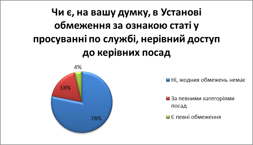 Крім того, відповіді на окремі питання свідчать про позитивні зміни, пов’язані з реалізацією гендерної політики в Установі.