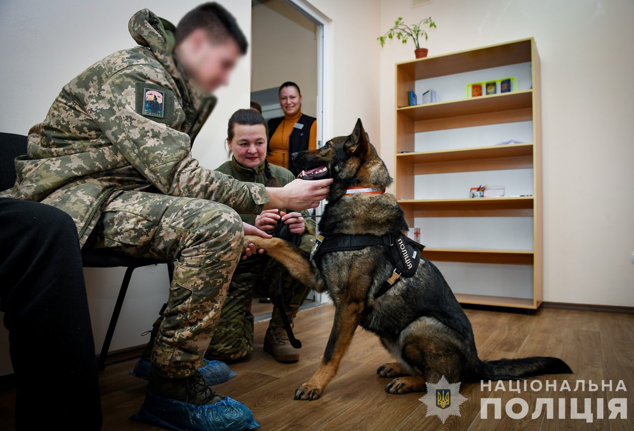 «Наші захисники після поранення потребують як фізичного, так і емоційного відновлення. Мотивація, настрій пацієнта впливають на результати реабілітації», - зазначила начальник центру психіатричної допомоги та психофізіологічного відбору медзакладу Олена Рябченко – Ми лікуємо тіло, а чотирилапі помічники поліцейських – душу. Вже зараз бачимо їх позитивний вплив на психоемоційний стан хлопців»