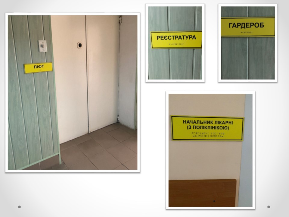 • приймальне вікно реєстратури переобладнано для прийому хворих на візках та милицях;
