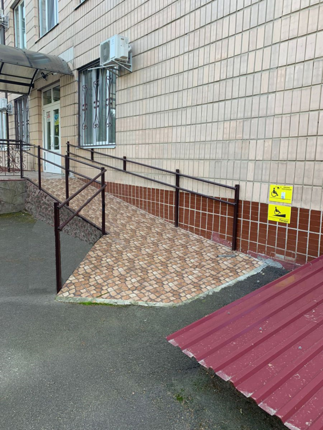 - обладнано пандус із відповідними поручнями, в’їзд на пандус облаштований кнопкою виклику медичного персоналу;