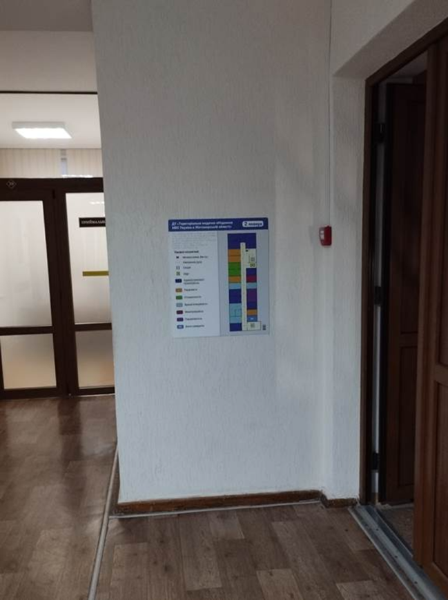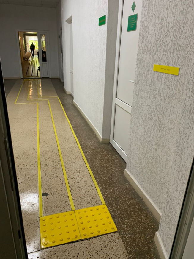 - встановлені тактильні таблички зі шрифтом Брайля та орієнтаційні підказки й контрастні предмети, у приміщеннях установи для осіб з порушення зору для легкого орієнтування у просторі.