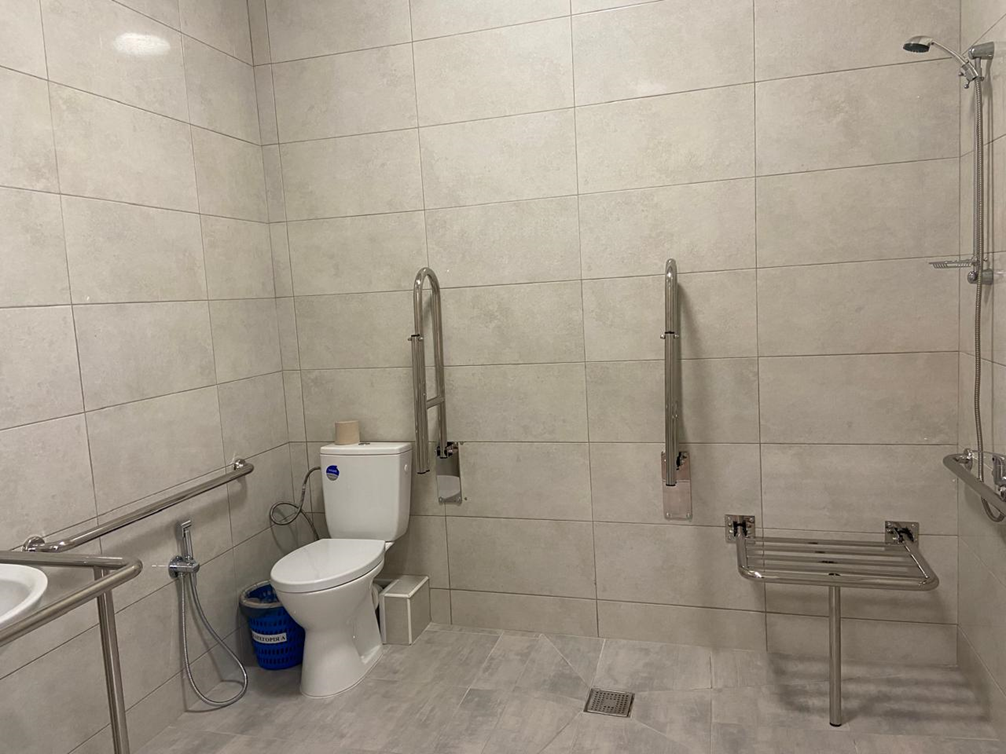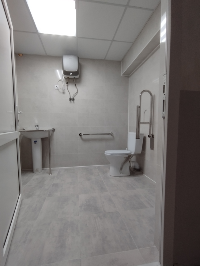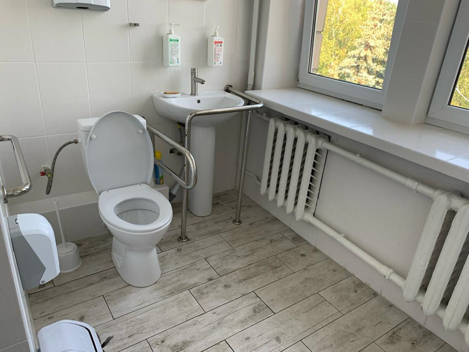 - обладнано вбиральні та душові для людей з інвалідністю у неврологічному та терапевтичному відділеннях лікарні, які мають необхідний комплекс приладів та обладнання.