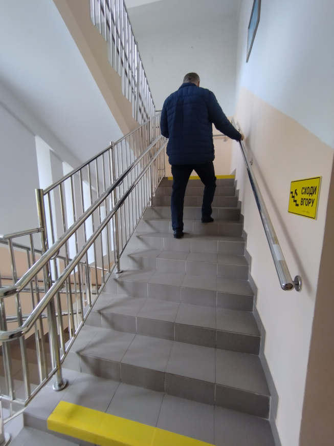 - облаштування поручнями сходинкових маршів і майданчиків у відповідності до вимог інклюзивності